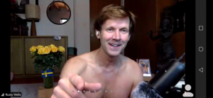 Han passade på att visa mycket uppskattning till arrangörerna bakom eventet, som under rådande omständigheter söker nya vägar för att vi alla ska kunna träffas och yoga tillsammans. Han vände sig även till ägare av yogastudios i Sverige som han tycker gör ett fantastiskt jobb som håller öppet trots alla begränsningar.